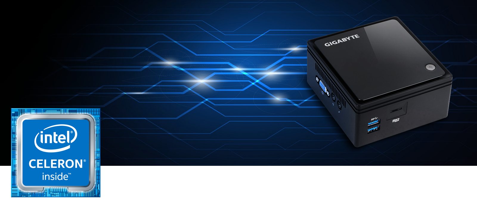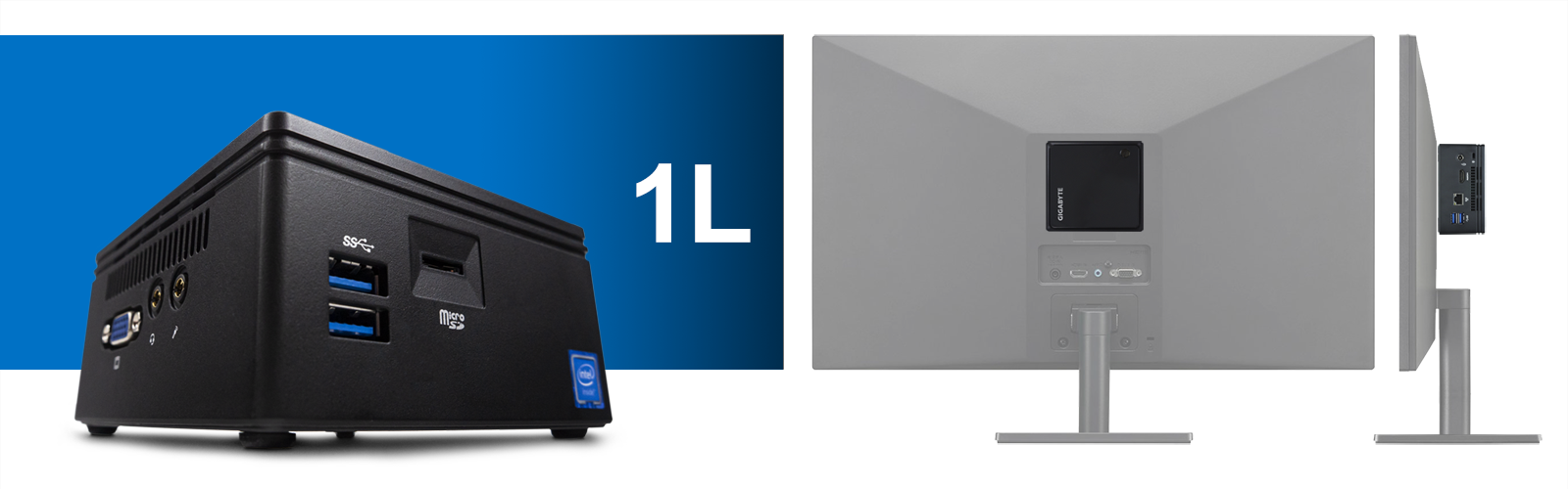 Η βάση του Core 1 Mini είναι μια ultra compact PC πρόταση της Gigabyte. Το εξαιρετικά αθόρυβο σύστημα ψύξης, το ενσωματωμένο Micro SD card slot καθώς και οι τέσσερις USB 3.0 θύρες συμβάλουν σημαντικά στον τομέα της χρηστικότητας. Η Gigabit LAN θύρα μαζί με τις WiFi (802.11ac) & Bluetooth δυνατότητες της μονάδας, εξασφαλίζουν απρόσκοπτη σύνδεση τόσο με το δίκτυο όσο και με τα ασύρματα περιφερειακά σου. Τέλος, το παρεχόμενο VESA bracket εξασφαλίζει πως το Core 1 Mini μπορεί να εγκατασταθεί πίσω από την οθόνη ή την TV σου, εξοικονομώντας χώρο και κρύβοντας τα περιττά καλώδια από την κοινή θέα.